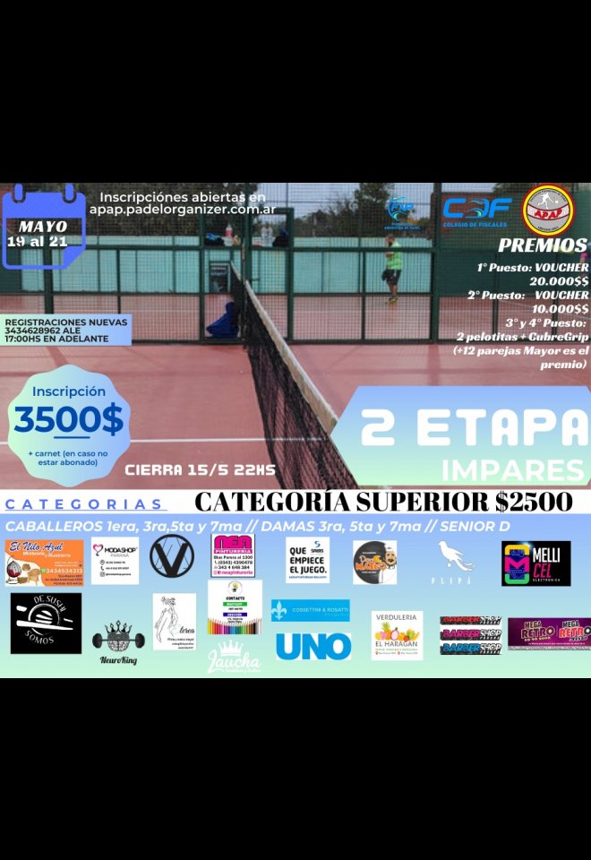 »» Evento: 2da Etapa Impares »» Localidad: Paraná »» Fechas: 26/05/2023 al 02/06/2023