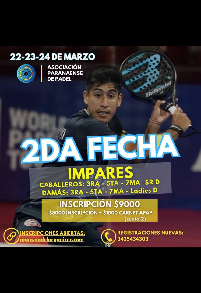 »» Evento: 2° FECHA IMPARES »» Localidad: Paraná »» Fechas: 22/03/2024 al 24/03/2024